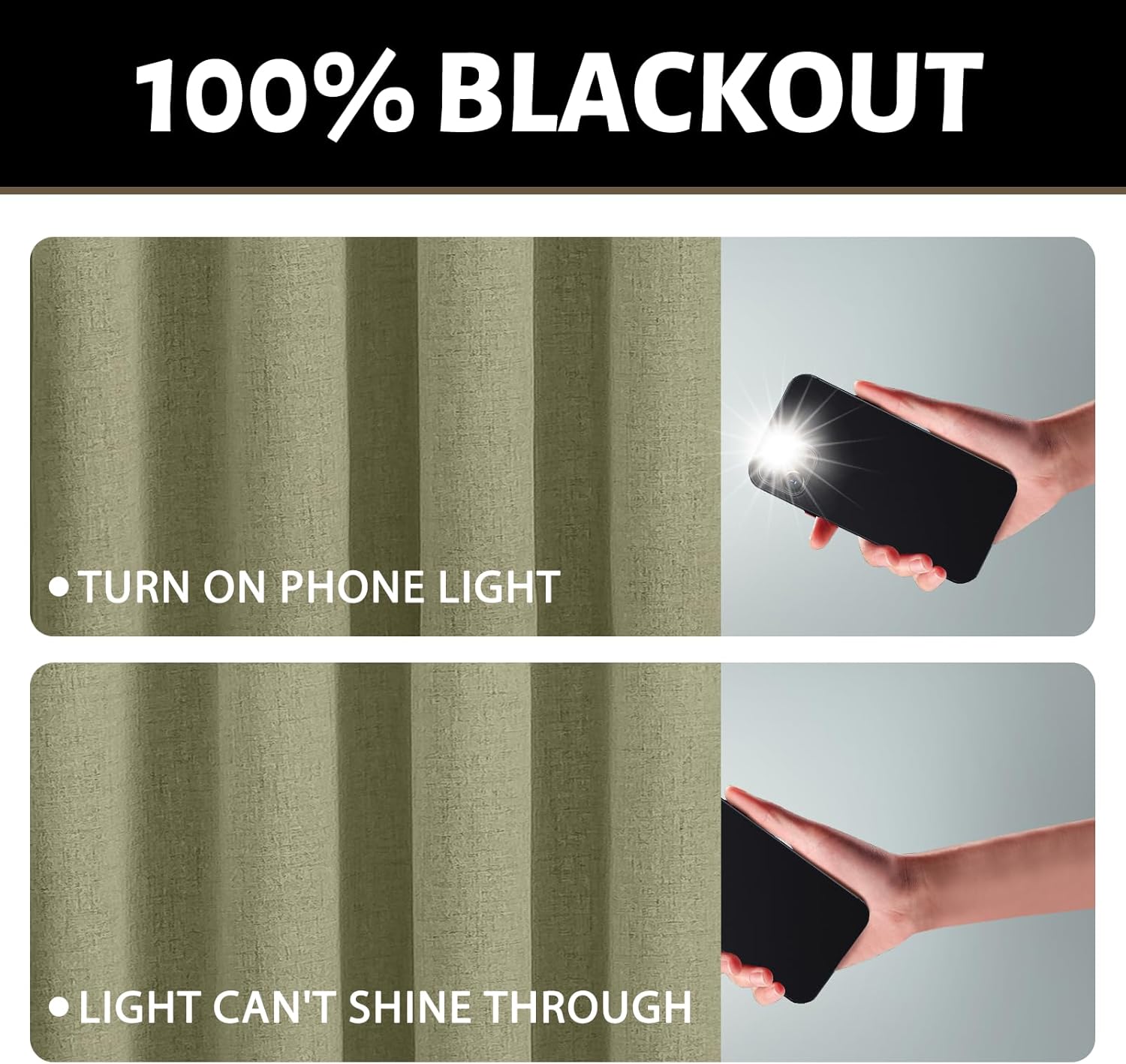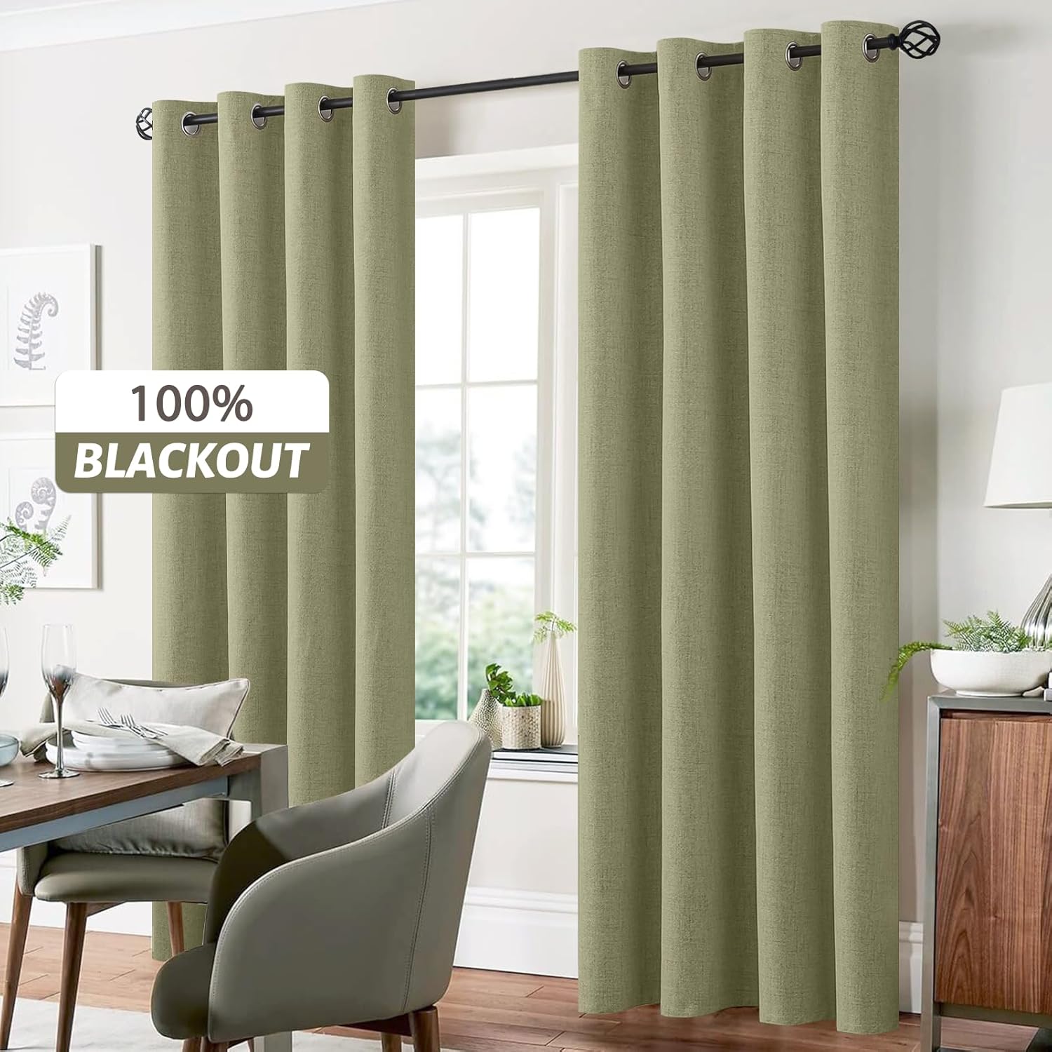 Cortina 100% Blackout; tela premium, 100% poliéster con 3 capas de engomado, con argollas metálicas de 4 cm de diámetro. Excelente aislación térmica, disminuye la temperatura interior, reduce el ruido exterior, bloquea la luz solar y brinda comodidad y privacidad a tus espacios.